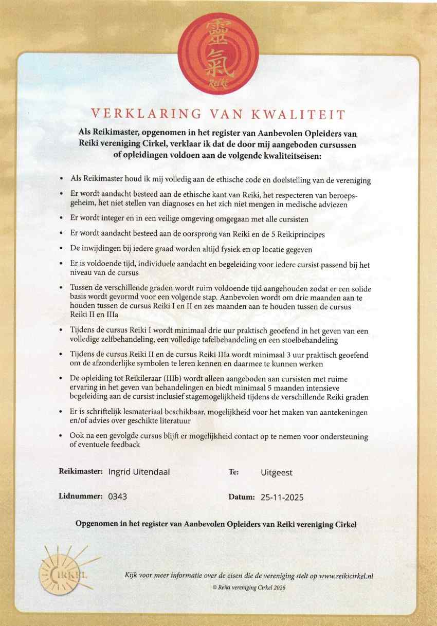 Bent u geinteresseerd in Reiki en wilt u zelf graag een Reiki cursus gaan doen? Dan kan dat uiteraard ook. neem dan even contact op!
