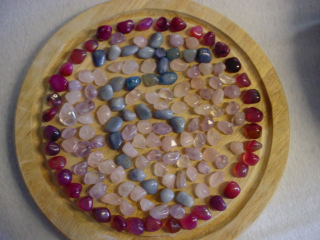Dit doen we eerst op papier om te zien welke model/afbeelding we willen hebben en nadat we deze getekend hebben, gaan we "proefleggingen"maken met edelstenen. Pas als we helemaal tevreden zijn met het resultaat en de mandala goed "aanvoelt", dan gaan we de edelstenen plakken en voegen op een houten ronde plank en u krijgt hem natuurlijk ook mee naar huis! Indien gewenst en de tijd het toelaat, worden er tijdens de crea-workshop ontspanningsoefeningen en korte meditaties gehouden. Kosten € 47.50