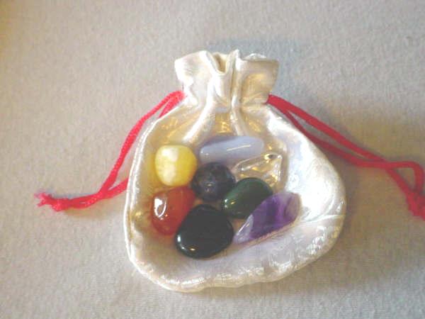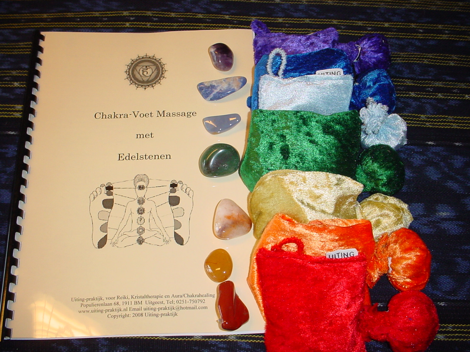 De 7 hoofdchakra's worden behandeld met chakra-edelsteen-pads en de voeten worden o.a. gemasseerd met edelsteenstempeltjes en massage stenen.